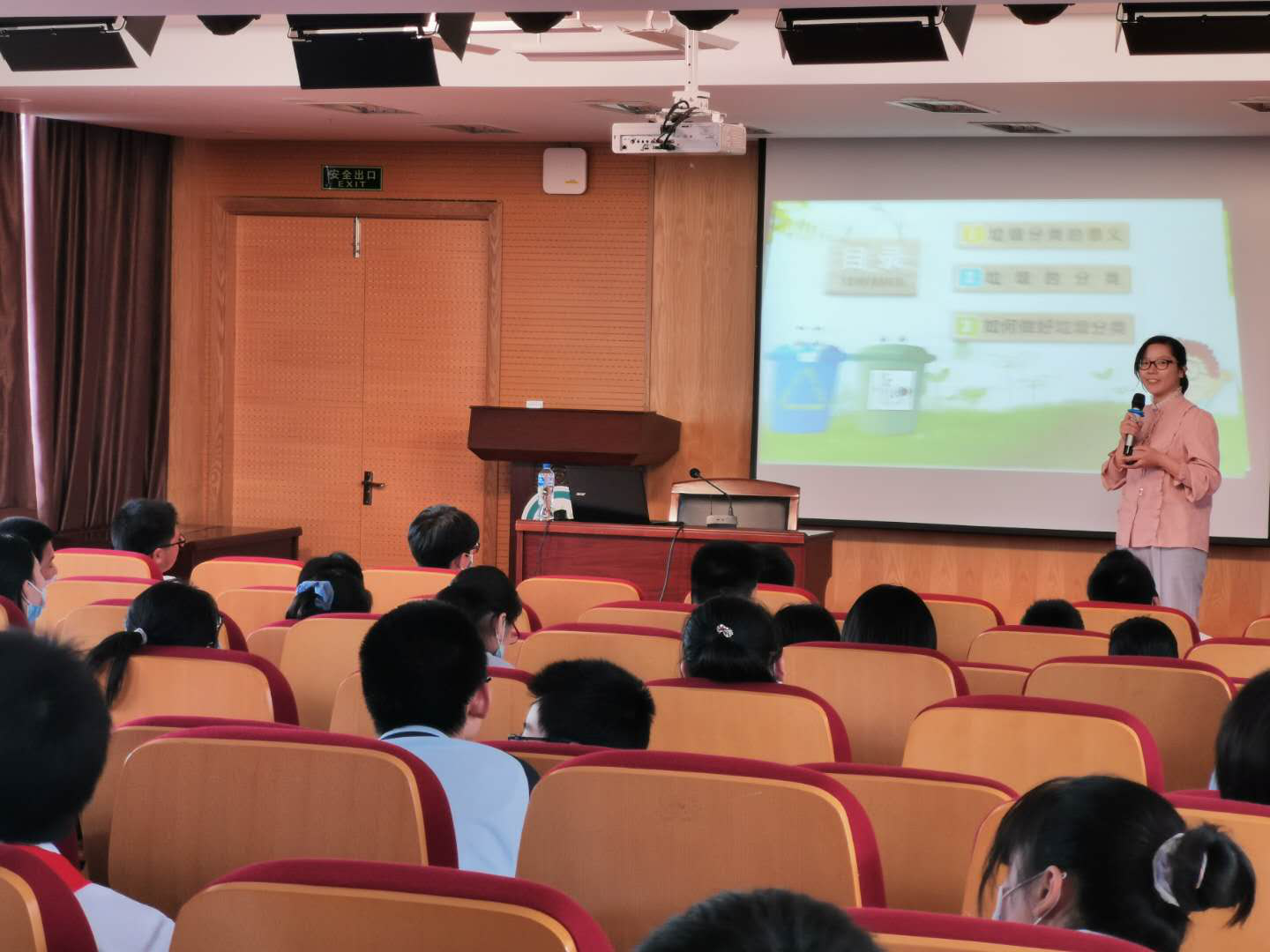 讲座面向上海康健外国语实验中学6-8级全体学生,一百余师生现场聆听了讲座,未在现场的学生以视频的形式进行了线上学习。环境工程教工党支部书记胡婷莛和教工党员汪琼芳发挥自己的专业研究特长,分别进行了“空气污染”和“垃圾分类”两个专题讲座。胡婷莛老师讲述大气污染的现状、评价指标及对健康的影响,引导学生思考如何做到降尘减霾。汪琼芳老师则为学生讲述了为什么要垃圾分类,垃圾对环境的污染及垃圾的处置方式,让学生从较深层面上去理解各种垃圾分类的原理。两位老师与现场学生多次互动,气氛活跃,激发了学生的思考能力,有效的提高了学生的环保意识,培养了其环境素养。