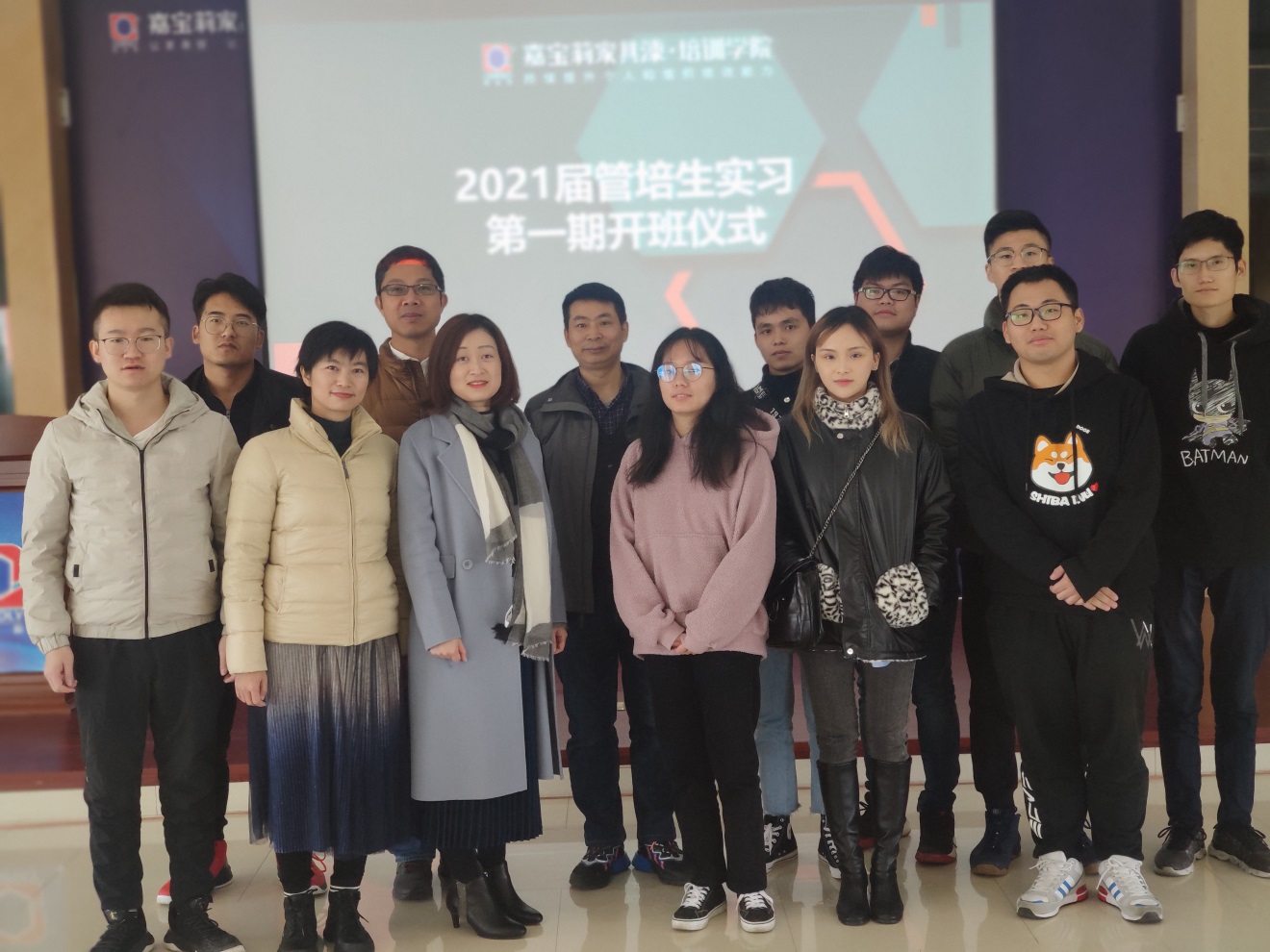 随后,在嘉宝莉人事经理陈聪的主持下,进行了2021届管培生实习第一期开班仪式。企业多位领导均参加了开学典礼。营销总监龚道平致欢迎辞,对实习生提出多个建议,如遇到问题时不要去找原因,而是尽快找到最佳的解决方案。希望同学们能够在实习过程中利用好自己的专业知识和素养,结合自己的兴趣找到适合自己的岗位与未来的发展方向。接着,王继虎老师对嘉宝莉多年来对专业建设,学科发展给与的支持,设立奖学金和奖教金表示感谢,并对嘉宝莉多年来学生实习和就业方面的合作表示认同。同时要求学生始终以安全为第一要务,在企业多学多思多想,和不同的带教师傅进行沟通交流,同学之间互帮互助,密切配合,为企业的正常运营作出贡献。
