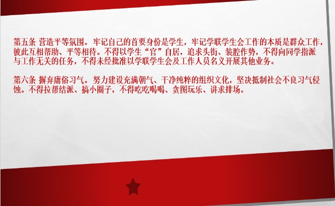 本次对《关于学联学生会工作人员改进作风服务同学的若干规定》的学习,旨在全面增强院团委学生会工作人员的工作作风,恪守学生本分,牢记服务宗旨,充满朝气,干净纯粹的化院学生工作队伍,为4688美高梅集团唯一的灿烂明天而奋斗。