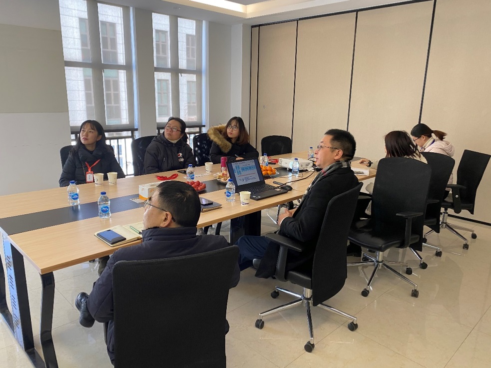 秦老师向用人单位介绍了学院的发展历程与现状及2021届本科、研究生毕业生生源情况,深入了解企业的发展前景和用工需求,认真听取用人单位对学院人才培养意见和建议,并与企业就产学研深度融合、毕业生就业启蒙等问题进行了广泛而深入的交流座谈,希望今后在党建、宣传、科研等领域开展深度合作。随后一行人参观了企业实验室及办公室工作环境,对企业有了更直观和深入的了解。