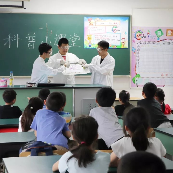 学院“LT小教师”志愿服务队曾获上海市“十大年度大学生”荣誉称号。近些年学院结合学科特点成立了一支以科普宣讲、科普实验为主题的大学生创新志愿服务团队——“LT科普讲师团队”。这支创新志愿服务团队以专业的素养、生动地课程讲解、有趣且操作性强的实验活跃于上海市中小学生的科普讲堂上,目前该团队共研究设计完成8套成熟课程,辐射松江区3所学校,开展课程10余次。暑假期间,该团队参与上海市暑托班项目,收获松江区政府、学校、学生的众多好评,先进事迹多次被《新民晚报》《上海教卫党建》等多家校内外媒体报导。“LT科普讲师团队”不仅是对学院“Little Teacher”传统志愿服务品牌内涵的优良传承和实质发展,更是对4688美高梅集团唯一学业优势的有效转化,有助于化工新时代青年学科素养的提升和创新热情的激发。