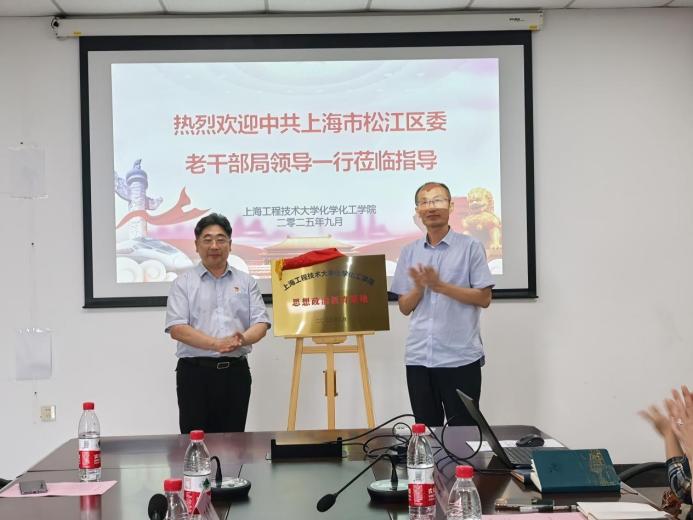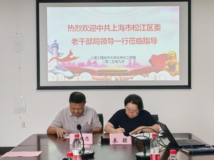 签约揭牌仪式后,双方开展了“科创未来·青春行动”主题交流。第十九届“挑战杯”上海市大学生课外学术科技作品竞赛特等奖和三等奖项目负责人陈艾红和林文坤同学分享了项目情况和前沿科研成果,现场互动频繁,气氛融洽。随后嘉宾们还参观了学院前沿技术研究院“制造中国”党性教育基地、药物智能制剂与智能制造研究中心、环境与资源创新中心等地,老干部局一行对先进的仪器设备和严谨的科研态度给予高度评价。