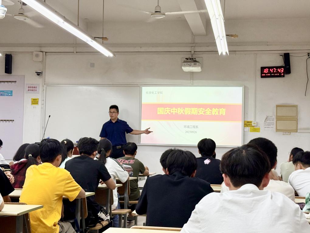 研究生辅导员邓月聚焦实验室及消防安全,重点提醒留校科研学生落实危险化学品严格管理要求、遵守设备操作规范、牢记应急演练流程,严禁违规操作和无人值守实验。
