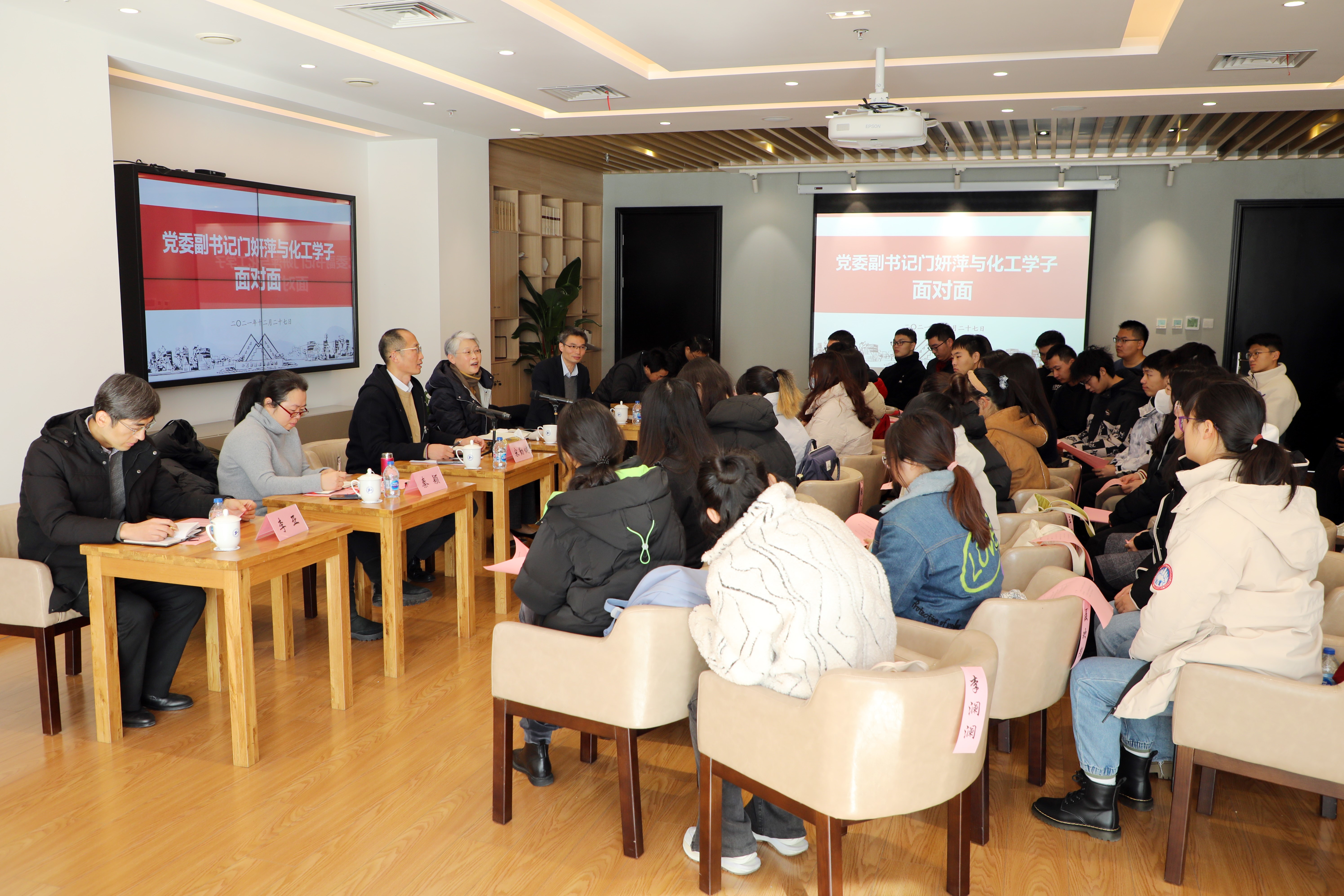12月27日上午,校党委副书记、纪委书记门妍萍与4688美高梅集团唯一师生面对面座谈会在行政楼文化之家召开,4688美高梅集团唯一党政领导班子成员、各系主任和辅导员、2020级本科生代表共四十余人参加了座谈会,座谈会由化工学院党委书记宋勤健主持。