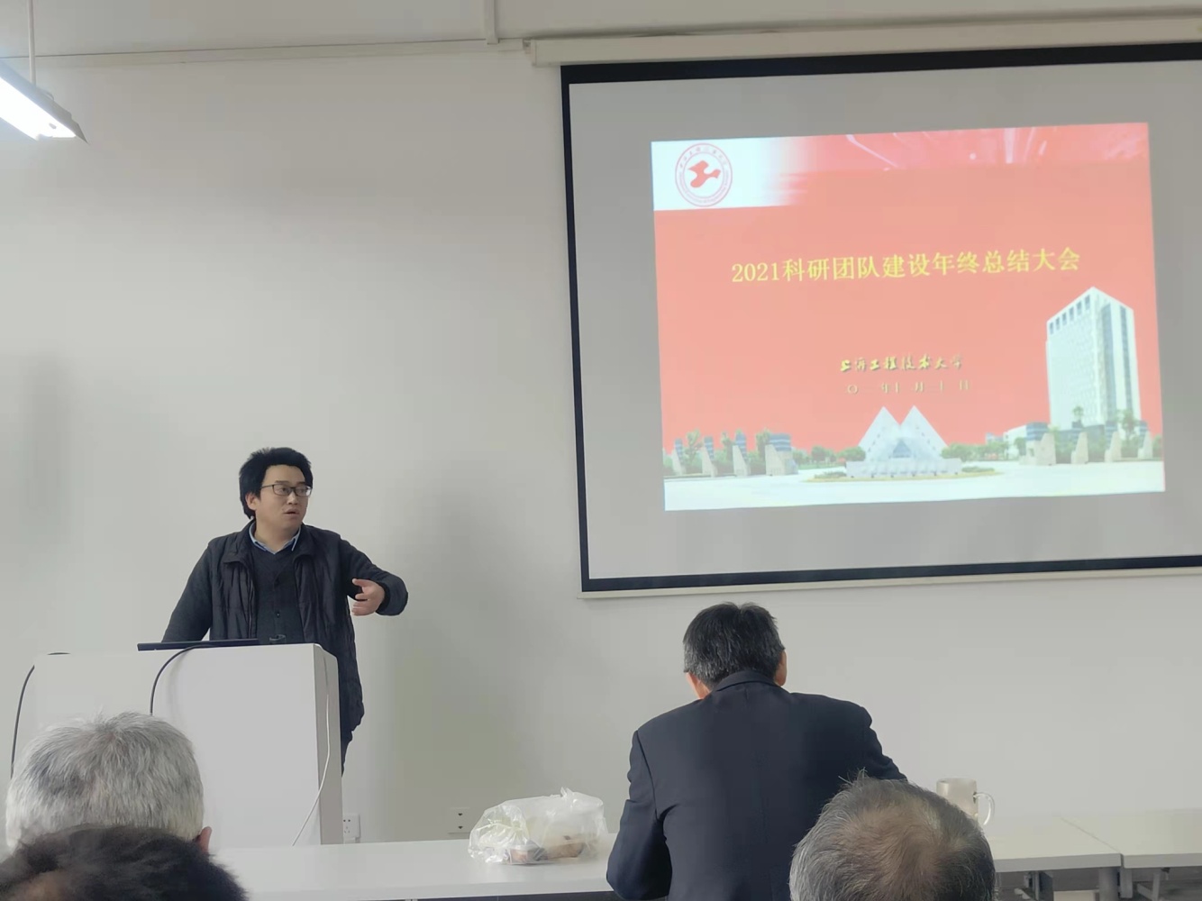 会上,环境与资源创新中心(李光辉教授)、微纳制造先进材料研究中心(孙韬教授)、功能高分子材料(王锦成教授)、污染物控制与资源化技术(张文启教授)、有机功能材料(吕爱风教授)、新能源电池(芮一川副教授)、先进催化技术(门勇教授)、药物活性物质(尹小英教授)、药物分析与高效化(张敏教授)、先进Smart涂料(温绍国教授)、计算化学创新研究(安炜教授)11个科研团队重点围绕科研项目申请和获批情况、科研奖项申报、学术交流活动、校企合作和研究生培养等方面进行了汇报交流,他们既总结了成绩和经验,也分析了存在的不足和问题,同时也介绍了下一年度的工作计划和主要建设目标。陆杰教授对各科研团队研究方向、团队成绩以及未来建设目标等进行了详细点评,并对2021年度国家级项目申报、省部级以上科学技术奖励申请等重点工作进行了部署,并希望各团队充分发挥凝聚力,整合团队资源,进一步凝练研究方向,在各自的研究领域取得更好的成绩,形成鲜明的特色。广大教师结合自身的科研工作经历交流了见解和看法,现场气氛热烈。