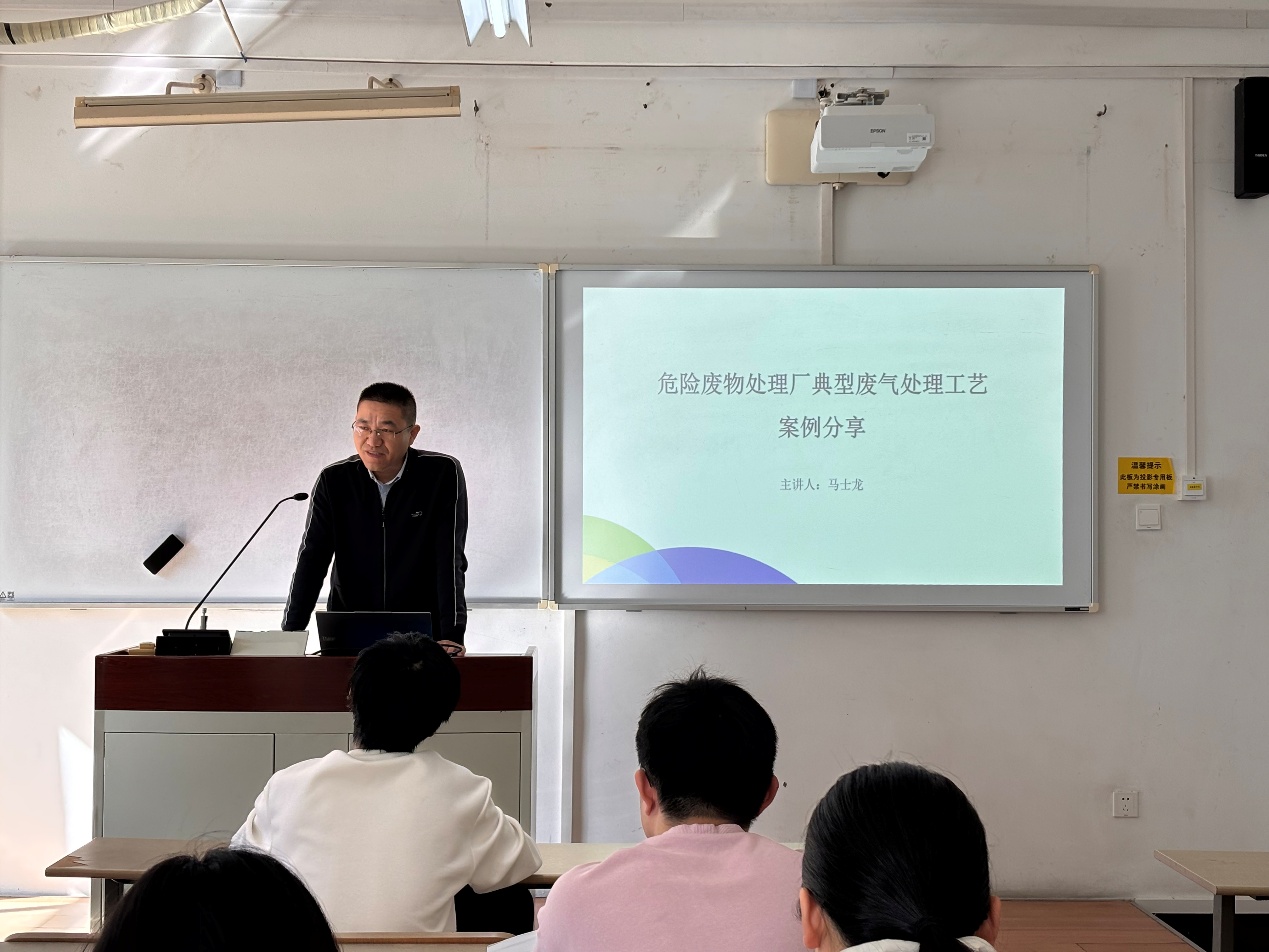 11月13日上午,4688美高梅集团唯一《大气污染控制工程》课程邀请上海煜工环保科技有限公司马士龙高级工程师走进课堂,为学生们带来了一堂理论和实践相结合的课程。课程主题为危险废物处理厂典型废气处理工艺案例分享,旨在帮助学生更加深入的了解典型大气污染物的控制技术以及处理工艺选择、设计的思路。