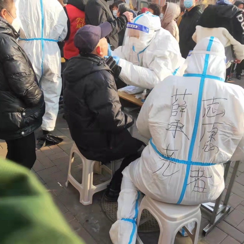 薛承尧同学就是其中的一位,穿着厚重的防护服,为身边有需要的人群提供帮助,面对严峻的形势和繁忙劳累的工作,仔细认真,不耐其烦,给这个寒冬带来了温暖!