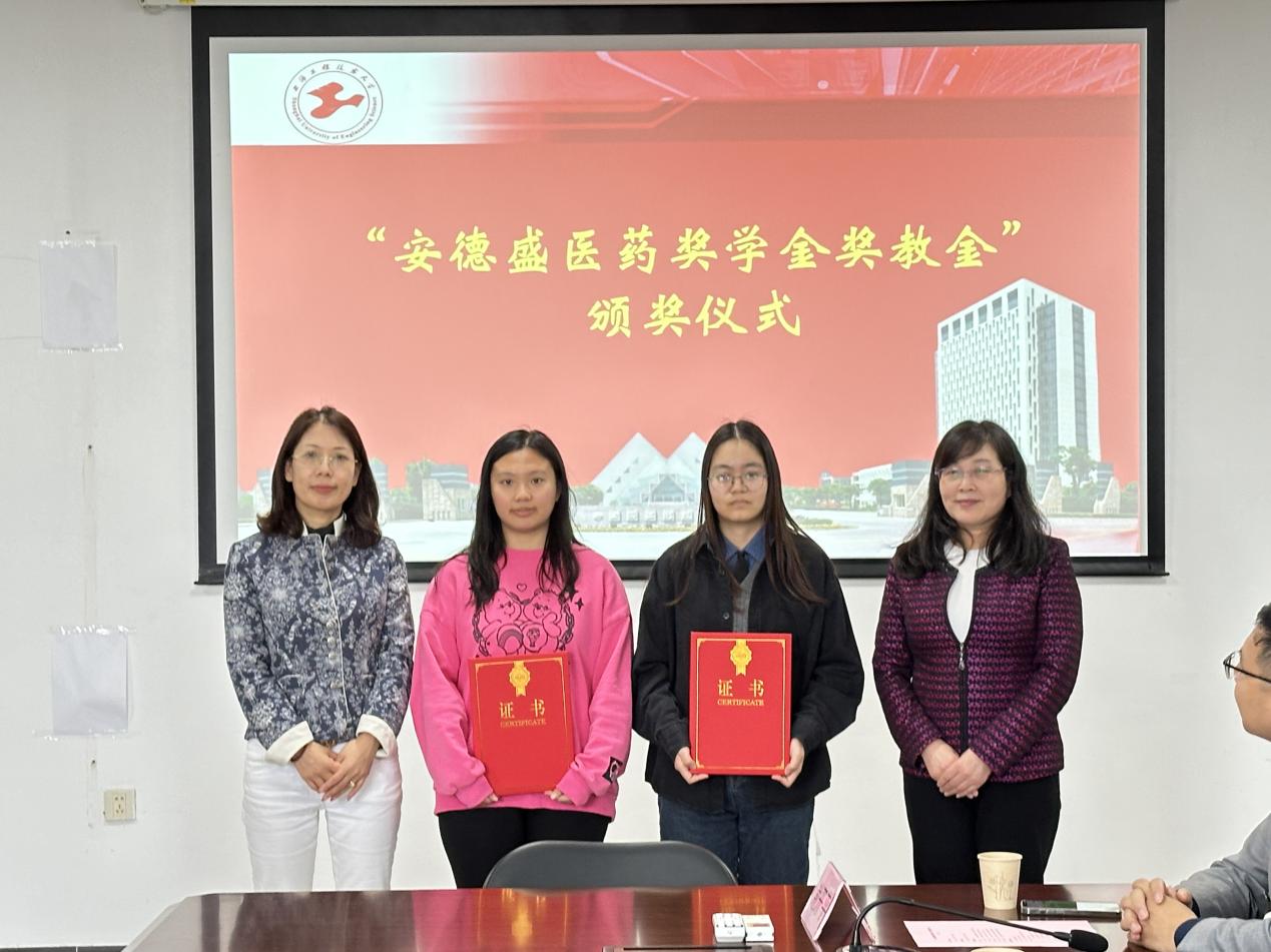 “安德盛医药奖学金、奖教金”是由上海安德盛生命科技有限公司在我校为医药前沿技术研究院在读研究生和全职在岗教职员工设立的,授予课程学习和研究成绩突出(优秀学习、优秀贡献、杰出贡献)的研究生、人才培养和科研成果出色(优秀教师)的教职员工,鼓励研究生学习知识和参与科研的热情,提高教师开展科研和教学工作的积极性。上海安德盛生命科技有限公司是一家专注于药物制剂体外质量评价仪器装备的研制开发、生产及供应的高科技企业。本次活动除了奖学金和奖教金颁奖仪式外,还进行了“医药产品研发与质量评价联合实验室”揭牌仪式,助力我校在“药工医”交叉研究领域的发展。