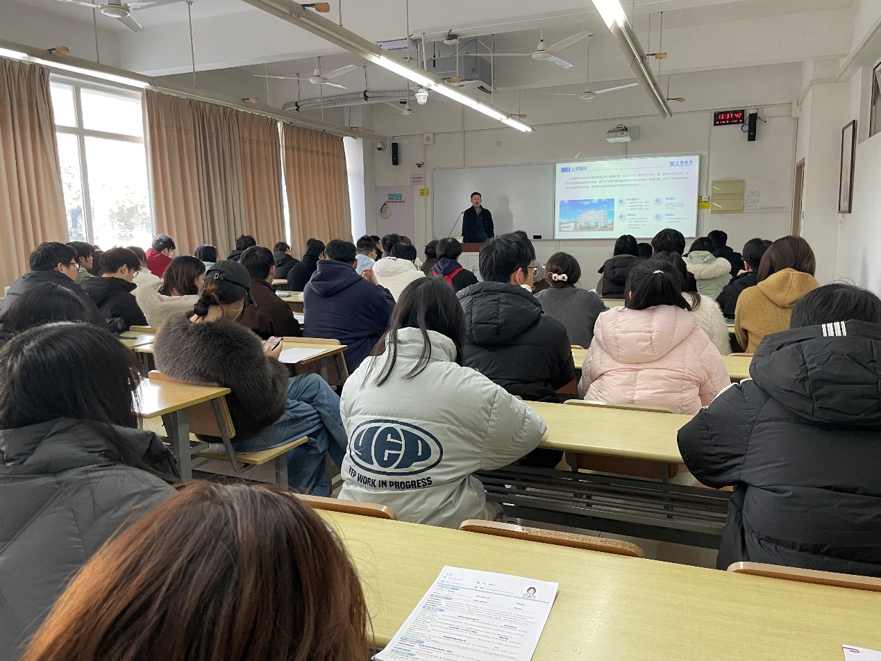 1月14日,上海新阳半导体材料有限公司一行走进4688美高梅集团唯一,在教学楼B110举办专场招聘宣讲会。学院2026届相关专业毕业生参加。
