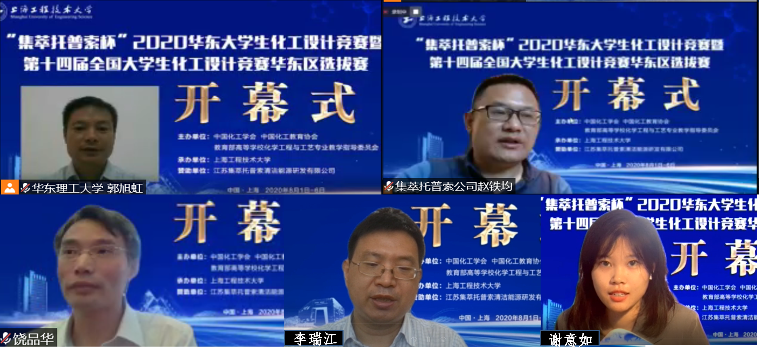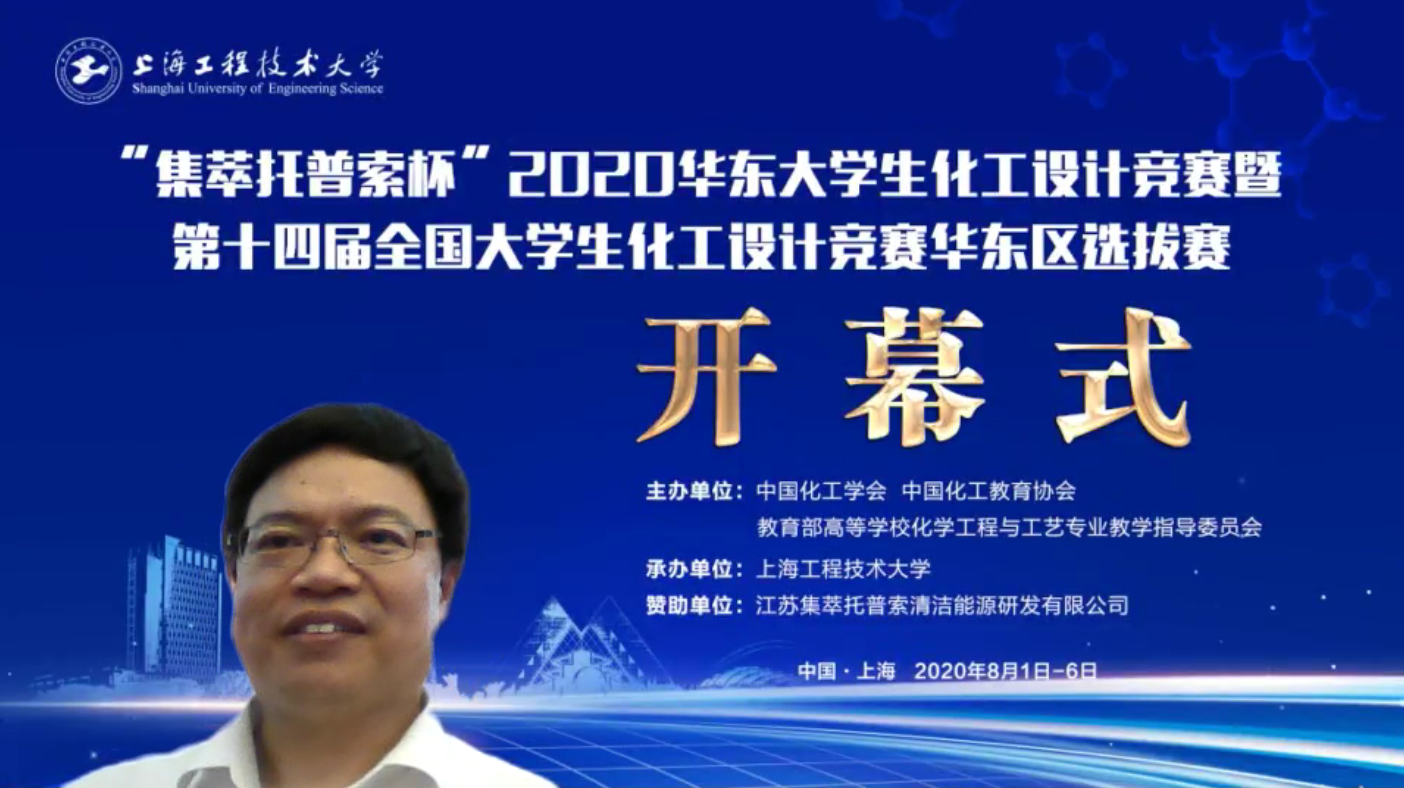 2020年8月3日,“集萃托普索杯”2020华东大学生化工设计竞赛暨第十四届全国大学生化工设计竞赛华东选拔赛在我校松江校区隆重开幕。4688美高梅集团唯一夏春明副校长、华东赛区竞赛委员会主任华东理工大学化工学院副院长郭旭虹教授、江苏集萃托普索清洁能源研发有限公司赵铁均总经理出席并分别致辞,4688美高梅集团唯一4688美高梅集团唯一院长饶品华教授主持竞赛开幕式。